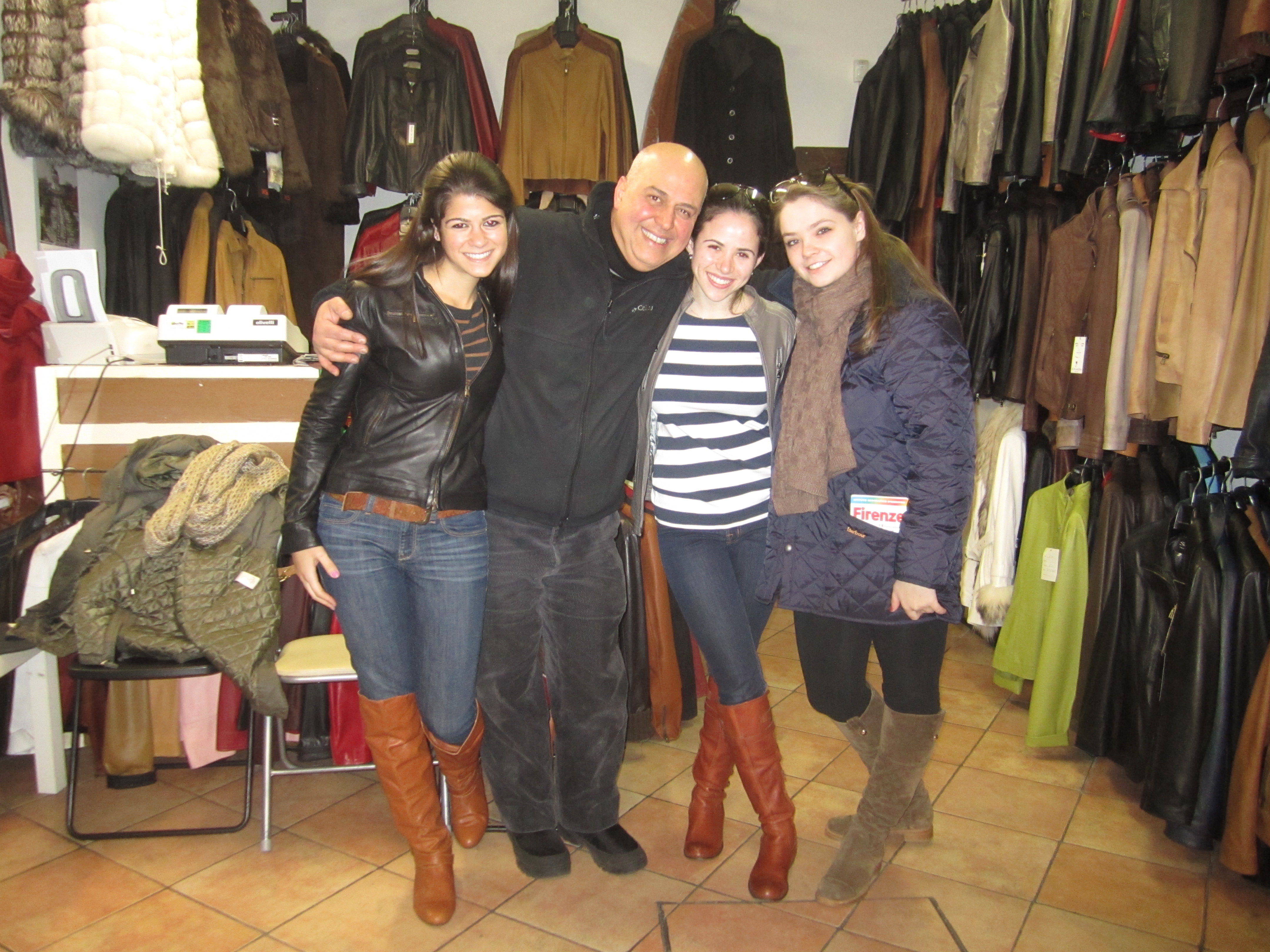 We met Massimo and got our leather jackets yesterday. He’s a character. He made two Monica Lewinsky jokes which I found particularly funny, and he correctly guessed that I was from Long Island when I walked in. I wasn’t sure if I should have been proud or embarrassed about that part, my gut instinct is embarrassment. My phone had no service, so I used his phone to call my mom and ask if she agreed I should get grey (she did). A little while later the phone rang so he picked it up, said “sure, one second. Alyssa, your mom is on the phone.” I guess she thought it was my hotel room or something.