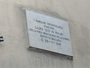 The road in Vallecorsa was one of the only roads still leading to Rome (ironic, I know. We all thought all roads lead to Rome, but not at this point in time) so the Americans bombed the town every morning at 9am to destroy the road and cut off the Germans. On the first day of the bombing 95, civilians were killed. 94 of them were found, but my Grandma’s aunt, Laura Ceci Mauri was not. There’s now a plaque in Vallecorsa in her memory.