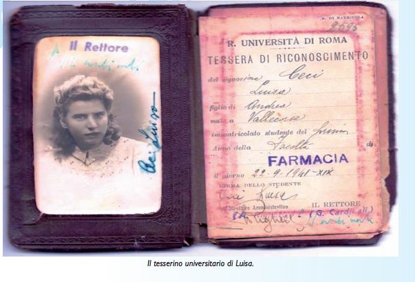 She received her high school diploma in 1941 (she had to repeat some grades because she lost her ability to speak Italian while in America and so she had to relearn the language) and began studying at the University of Rome. Fun fact: my Grandma was the first woman in her town to go to college and receive a diploma!!